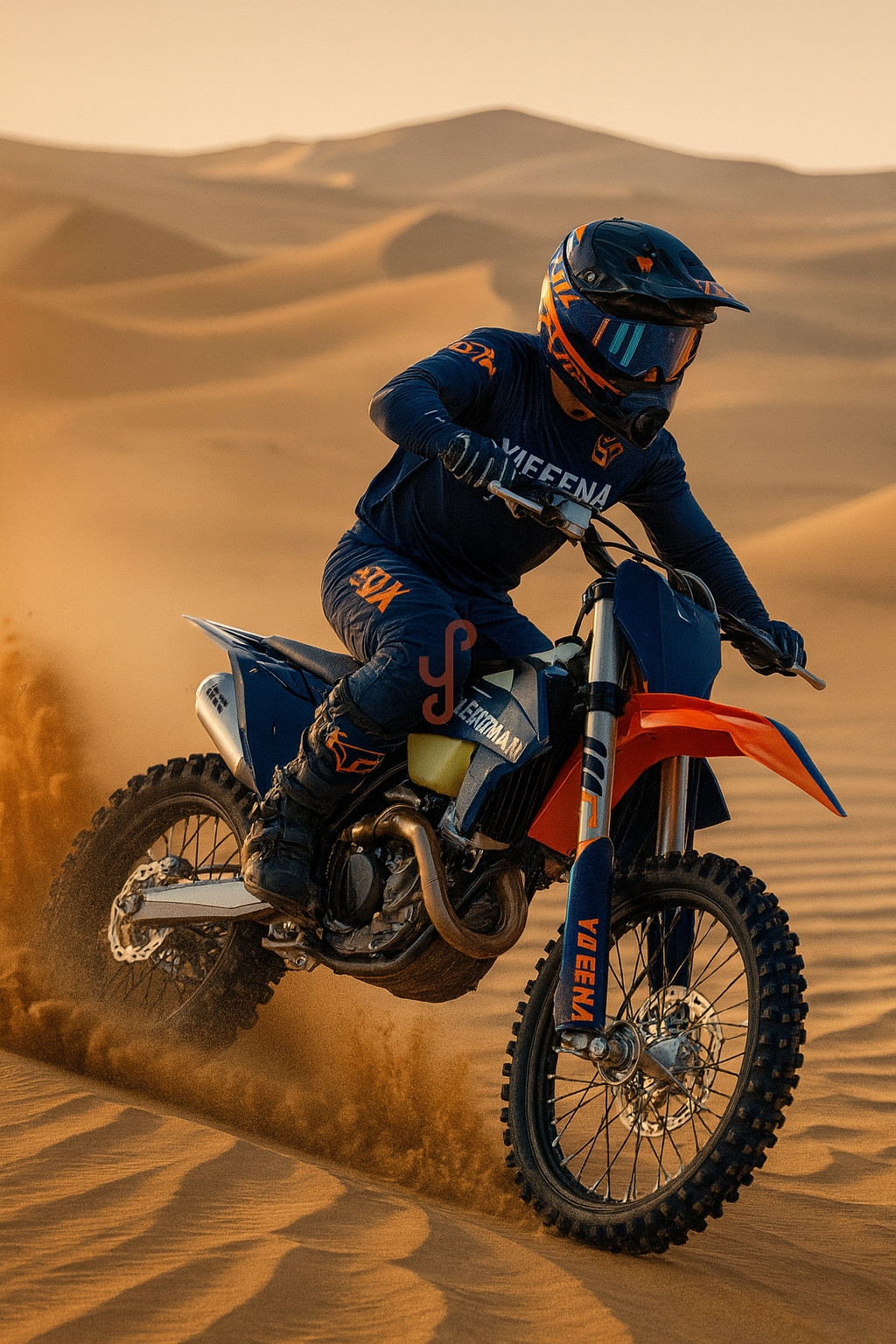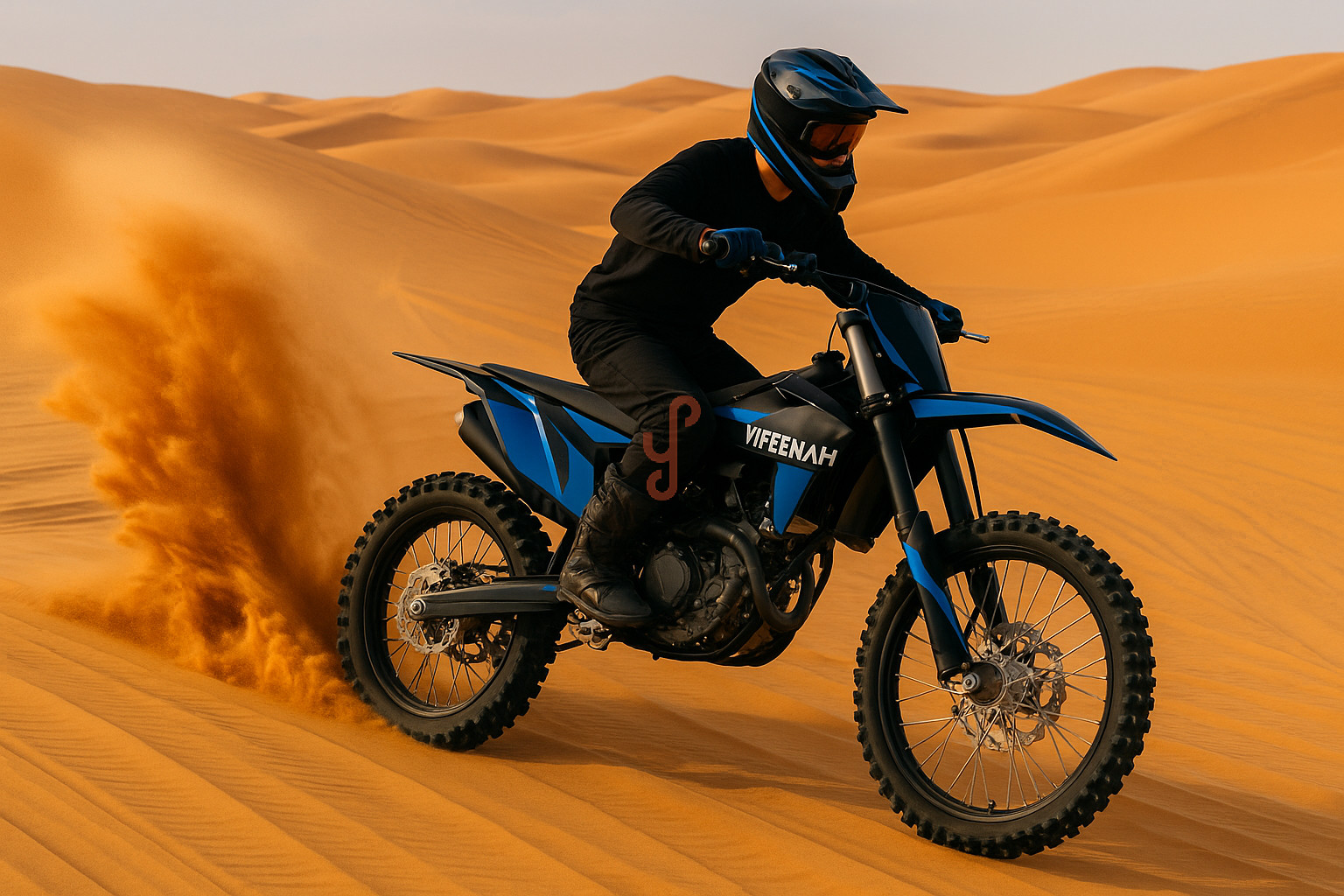 Engineered for dominance across the dunes, the YIFEENAH 480 Desert Edition is a purpose-built off-road motorcycle that blends race-grade performance with rugged desert endurance. Designed specifically for UAE terrain and events like Liwa Festival, this bike offers the power, agility, and control needed to carve through towering dunes and hardpack trails alike.